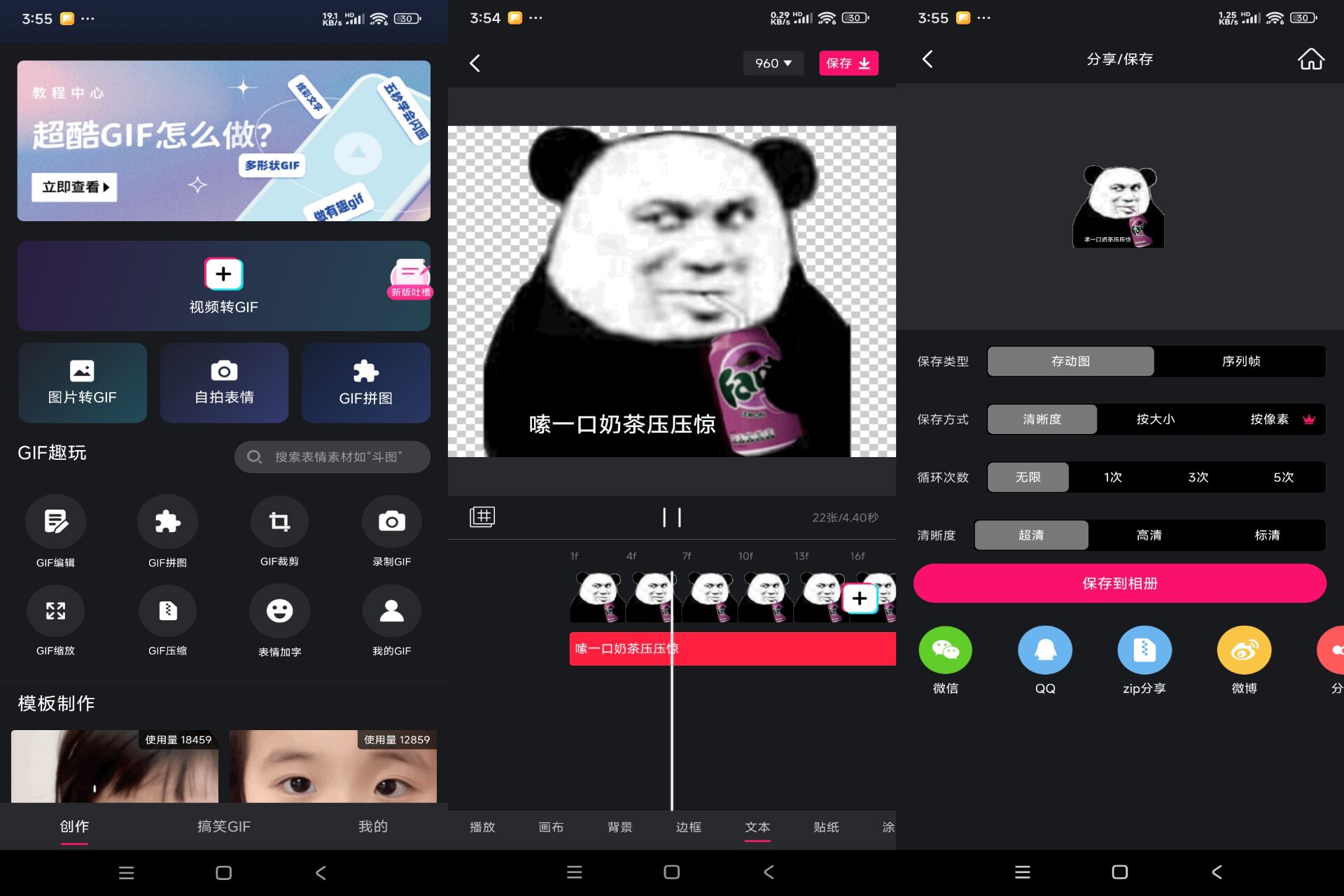 一款Gif动图编辑制作软件,支持将视频转为gif,多张照片合成为gif,支持gif动图编辑,也支持在gif上添加各种好玩有趣的贴纸文字,还有丰富gif动图素材,一键使用。