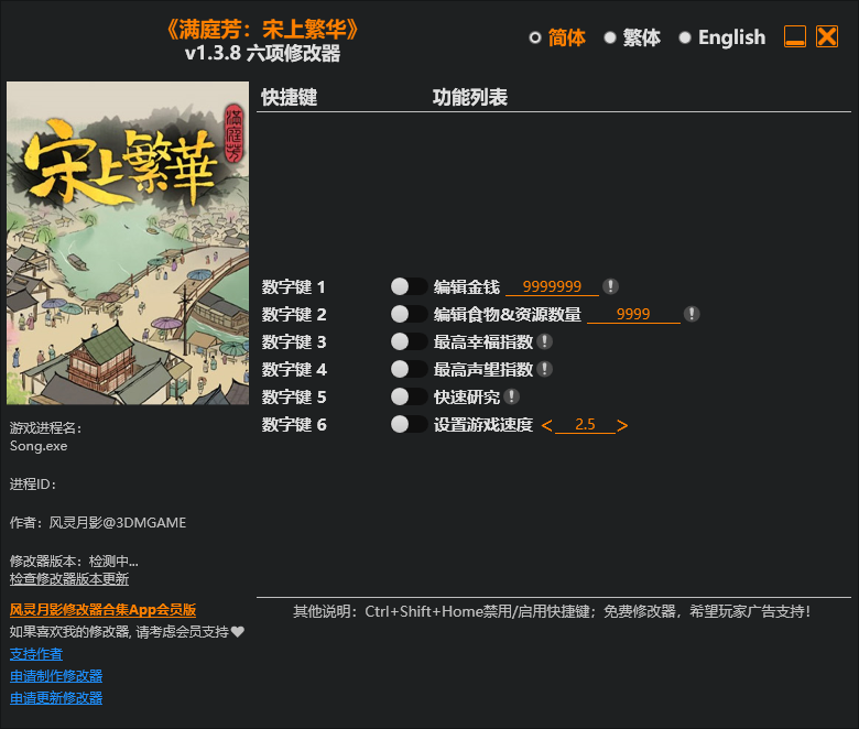 《满庭芳:宋上繁华》v1.3.8 六项修改器