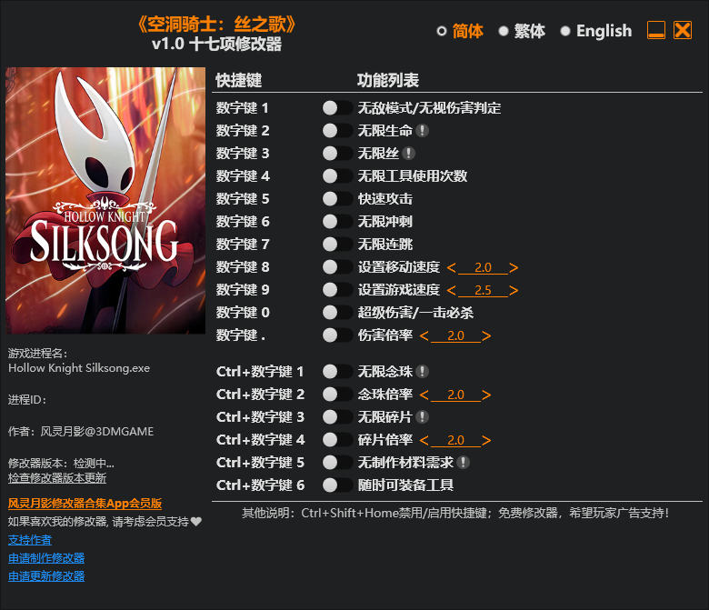 《空洞骑士:丝之歌》v1.0 十七项修改器