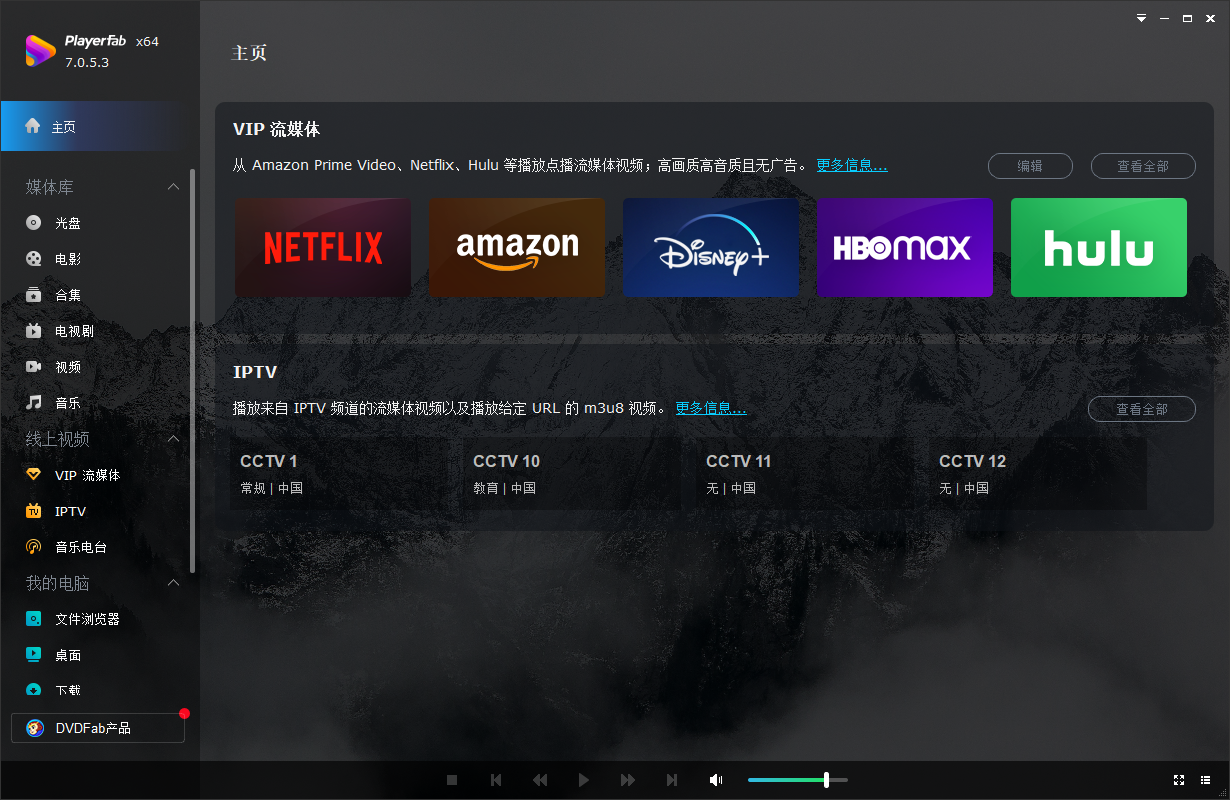 PlayerFab是一款功能强大的视频播放器,它提供了多种视频格式支持的功能,可以播放各种高清视频文件,包括但不限于AVI、MPEG、WMV、MP4等格式。同时,它还具备BDAV、BDMV、ISO三种蓝光光盘格式的支持,以及流行的音频格式,如MP3、WMA等。