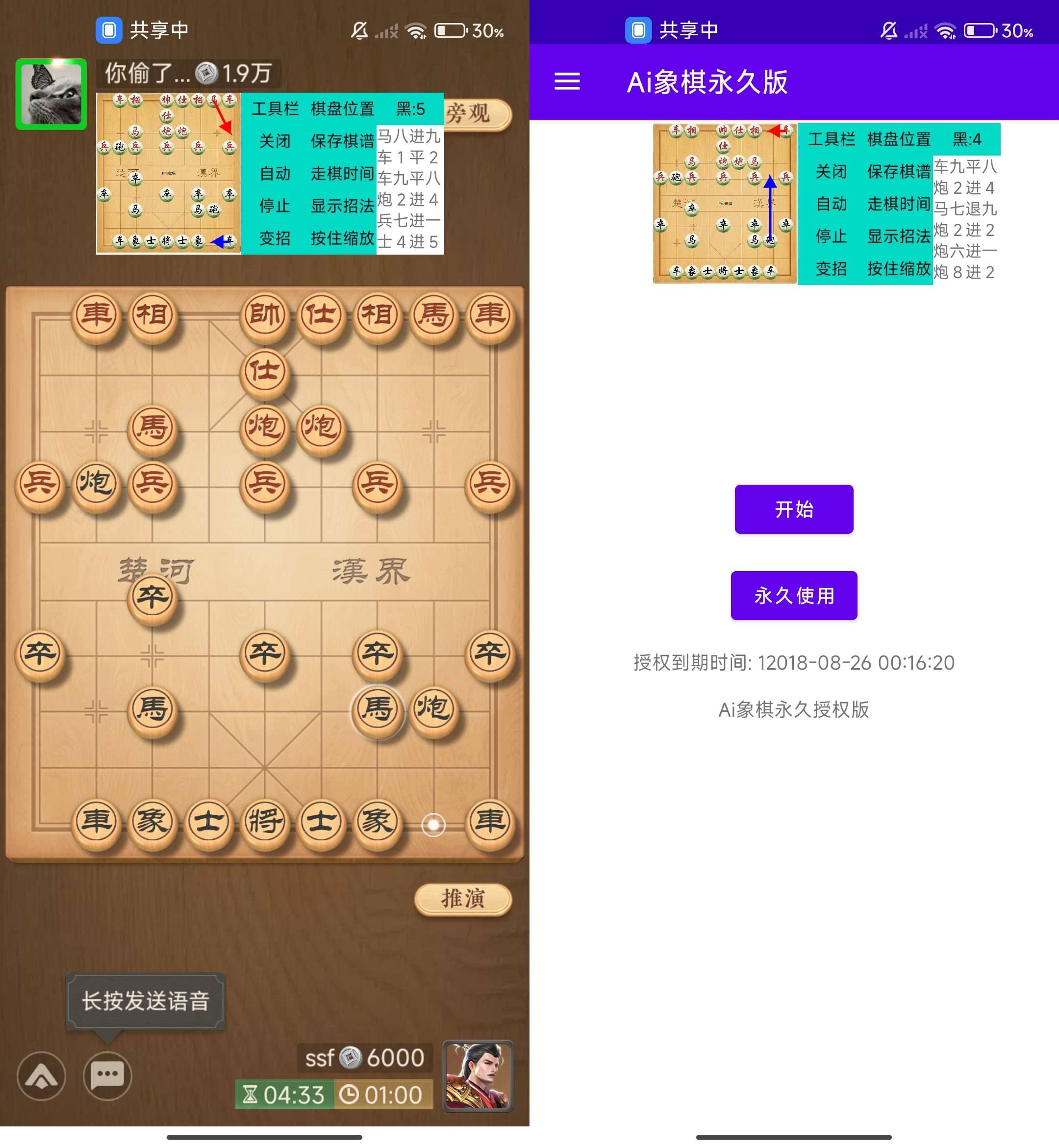 Ai 自动识别棋盘分析下棋局势,自动化操作,助你学习象棋知识!无限制使用、无广简洁,永久授权!