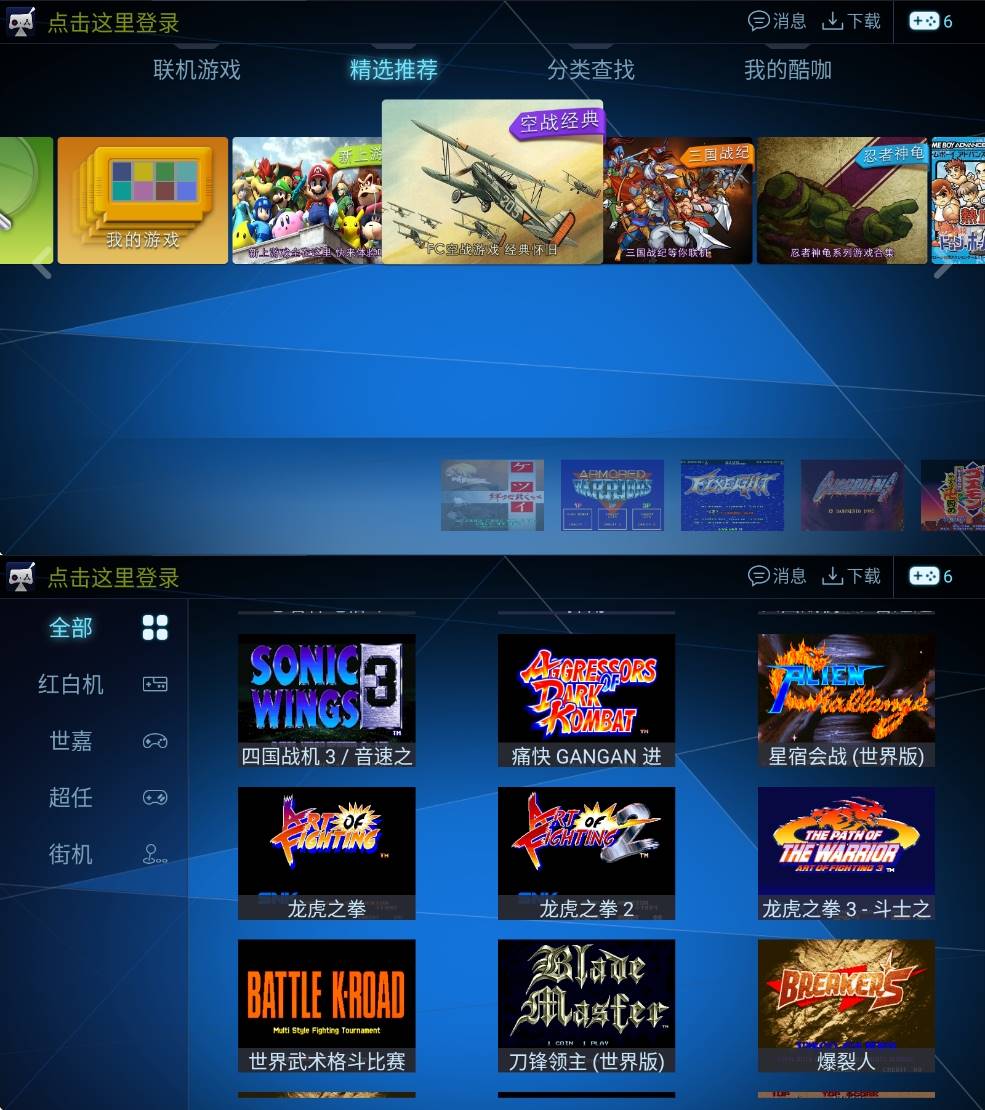 酷咖游戏tv版是安卓电视上的游戏模拟器软件,里面有街机游戏,也有掌机游戏,安装app后瞬间就能让电视成为游戏设备,体验大屏打街机游戏的乐趣,能够给8090年代的朋友带来深深的回忆