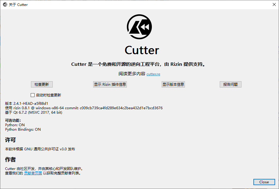 Cutter是一个开源的反汇编和分析工具,它提供了对多种不同体系结构的二进制代码进行反汇编和分析的能力。它被广泛用于恶意软件分析、软件漏洞研究、二进制分析等领域。